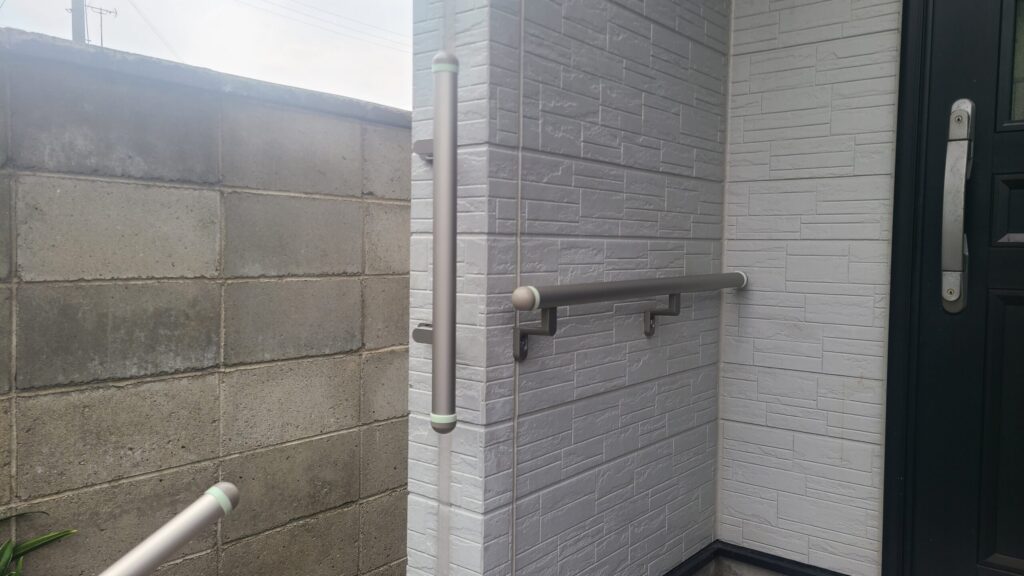今回、介護保険の使用で、以前から気になっていた場所にしっかりと手摺の取付けができて、本当に良かったです。特に玄関ドアを開ける時の支えや、家横の通路の取り合いなど、細かな部分まで配慮してもらえて感謝しています。これで、これから安心して日々を過ごせます。ありがとうございました。