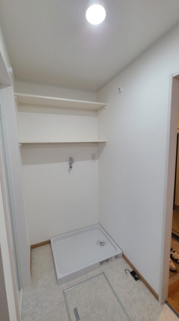 洗濯機の上には、洗剤等を置ける固定の棚をご提案しました。