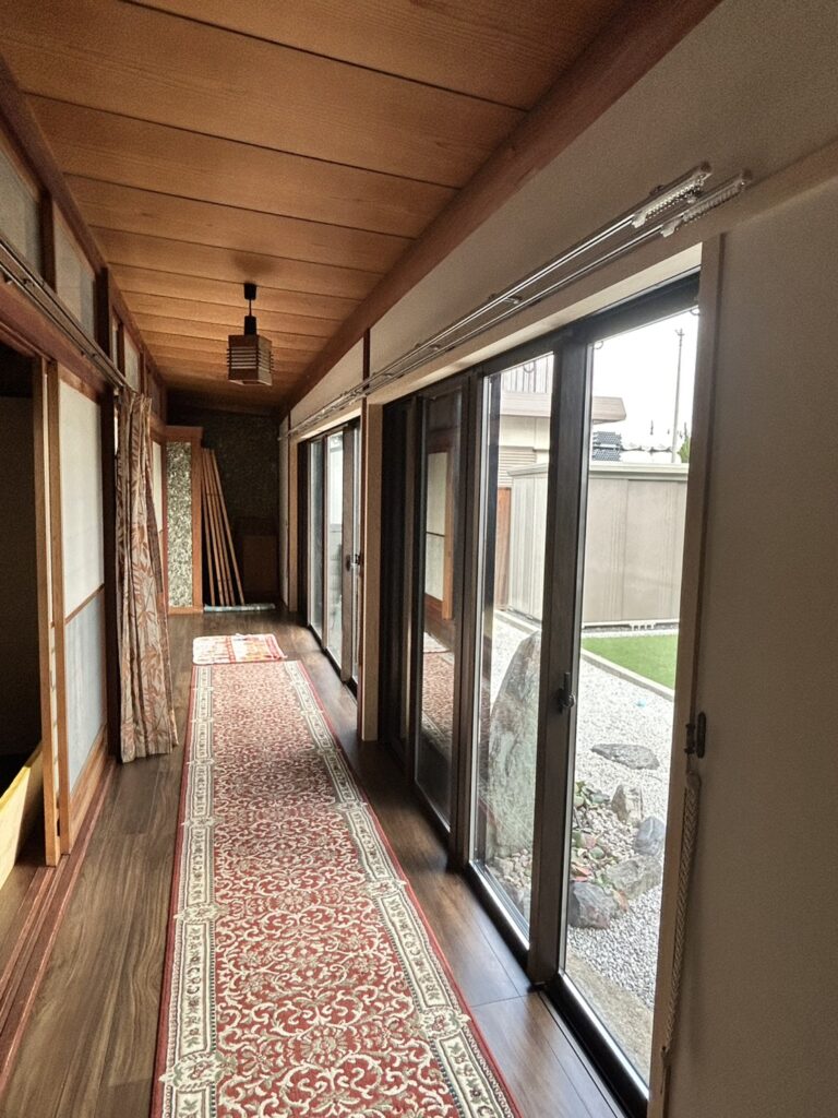 最初は縁側のサッシだけの予定でしたが、追加で床の間の寒さ対策と、畳からフローリングへの交換工事もお願いしました。