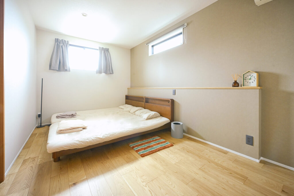 スマートフォンやメガネ、アロマ、読みかけの本など、ちょっとした小物を置くのにとても便利です。機能は最小限に、けれど暮らしの質を高める工夫を詰め込んだ、心安らぐ空間になりました。